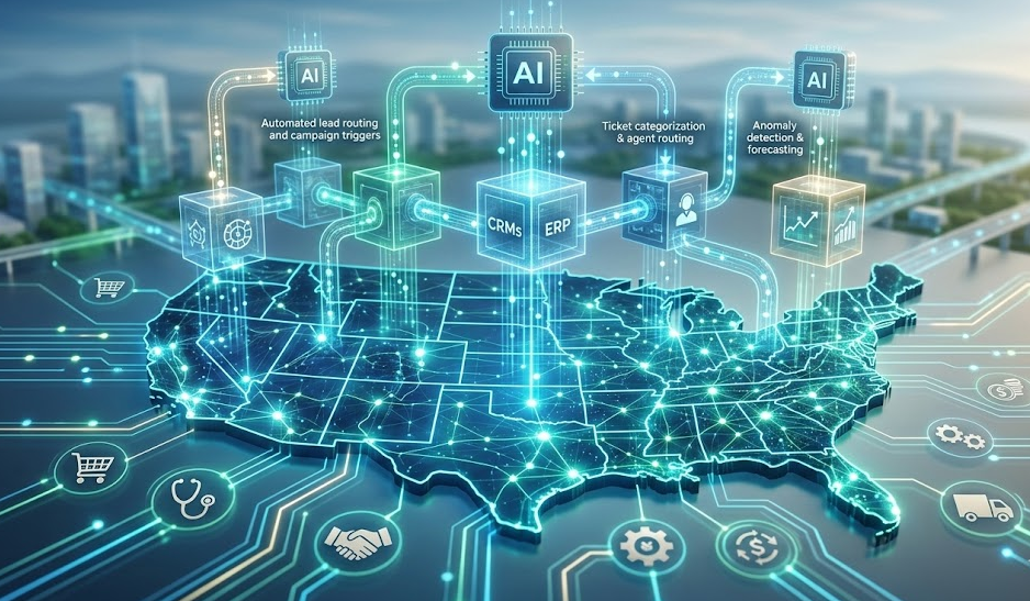 Artificial intelligence has moved from experimentation to operational infrastructure across the American economy. Only a few years ago, most organizations viewed AI as a research project or marketing feature. Today it is becoming a foundational layer for how companies operate, make decisions, and interact with customers.